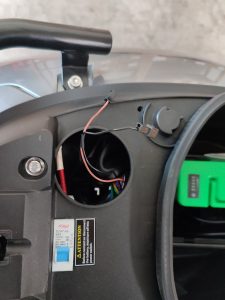 Unter der linken Seitenverkleidung befindet sich der Controller. Daran ist ein Kabel zu finden, dass nicht zusammengesteckt ist.