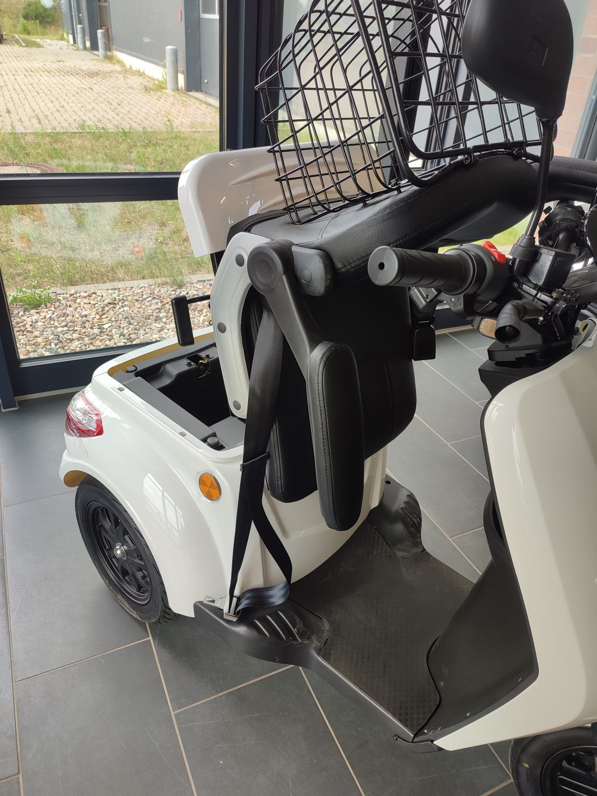 E-KUMA “Go”: Bequem und sicher unterwegs sein. Mit einem dreirädrigen Elektromobil bleiben Sie auch im Alter mobil. Das e-mobil kann von Menschen, die vor dem 1.4.1965 geboren sind ohne Führerschein gefahren werden. Alle anderen benötigen lediglich eine Mofa Prüfbescheinigung. Sonst kann das Mobil natürlich auch mit dem PKW oder Moped Führerschein gefahren werden. Das Elektromobil verfügt über einen Sicherheitsgurt. Bei angelegtem Gurt besteht keine Helmpflicht.