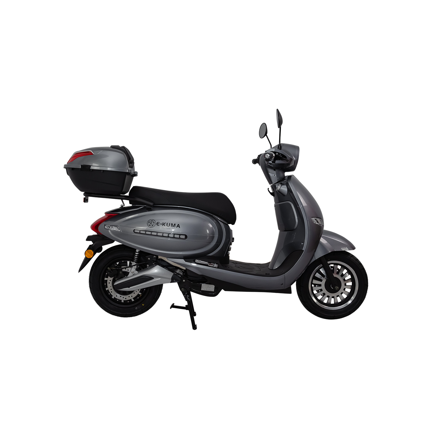 E-KUMA “Sun” im klassischen Design: Das Modell Sun ist durch seine großzügigen Maße auch besonders für groß gewachsene Personen oder für das Fahren zu zweit geeignet. Mit dem durchzugsstarken 3000W Motor steht immer genug Leistung zur Verfügung, auch am Berg.