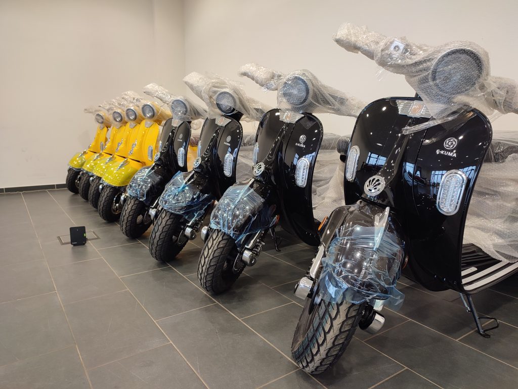 Im großen 200 m² Showroom haben wir alle Modelle und alle verfügbaren Farben zum Anschauen und Ausprobieren verfügbar. Hier können Sie sich ausführlich beraten lassen und ihren Roller auch vor Ort kaufen und gern mitnehmen. Kartenzahlung vor Ort ist möglich.